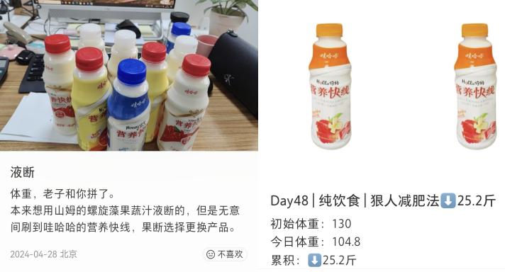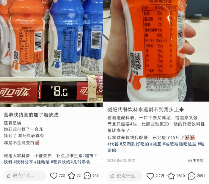 2024年,网上掀起用营养快线辅助减肥的潮流。(图/社交媒体截图)