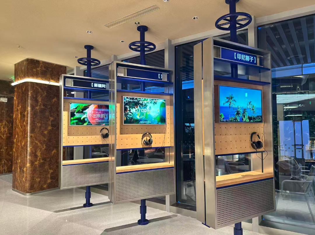 此外,红餐网还留意到,门店二楼还设置了展示瑞幸咖啡豆及椰子等原材料产区的互动装置,消费者可以戴上耳机体验。另一侧则开设了零售区,用来展示挂耳、咖啡豆和咖啡液等产品。