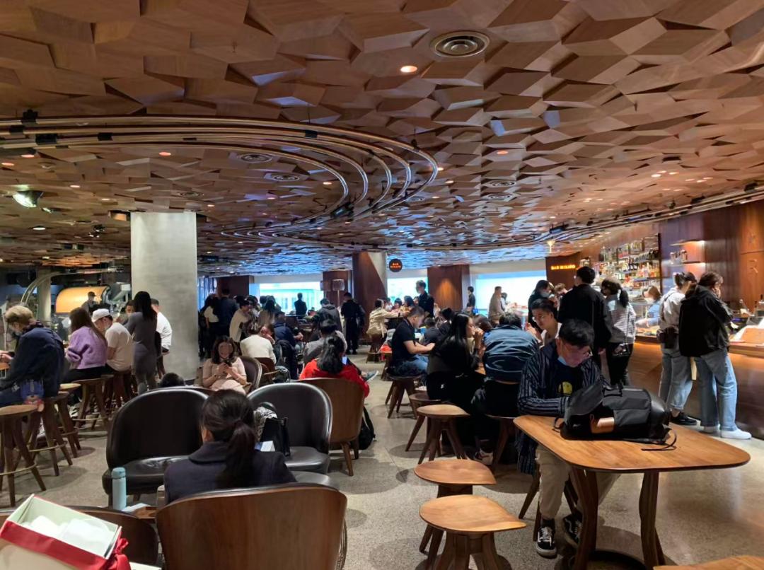 例如星巴克臻选上海烘焙工坊,一楼有甄选烘焙区、主吧台、品鉴吧台、二楼有长吧台、咖啡图书馆、茶瓦纳等。消费者在这里可以看到咖啡生豆,经历工业化的烘焙、冲煮,最后成为手中饮品的过程。